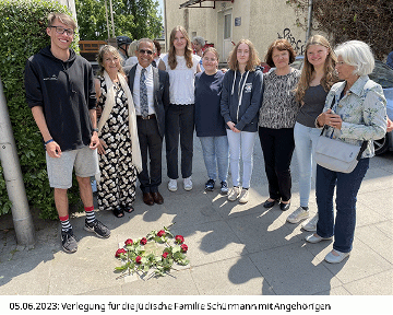 - Auf Initiative der Schule Verlegung von Stolpersteinen - am 5. Juni 2023 für die jüdische Familie Schürmann und am 17. Juni 2025 für das jüdische Ehepaar Stein. In diesem Kontext Beteiligung an der Recherche und Mitgestaltung der Verlegungszeremonien.